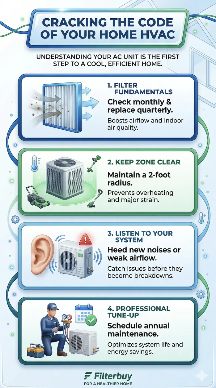 The Government's Own List of Safe DIY AC Maintenance Tasks U.S. Department of Energy – Air Conditioner Maintenance. This is the resource we wish every homeowner would read before their first DIY attempt. The DOE clearly separates the maintenance tasks you can safely own from the ones that need a trained set of hands. Whether you are using 16x25x1 air filters or 14x20x1 air filters, regular replacement is key. https://www.energy.gov/energysaver/air-conditioner-maintenance